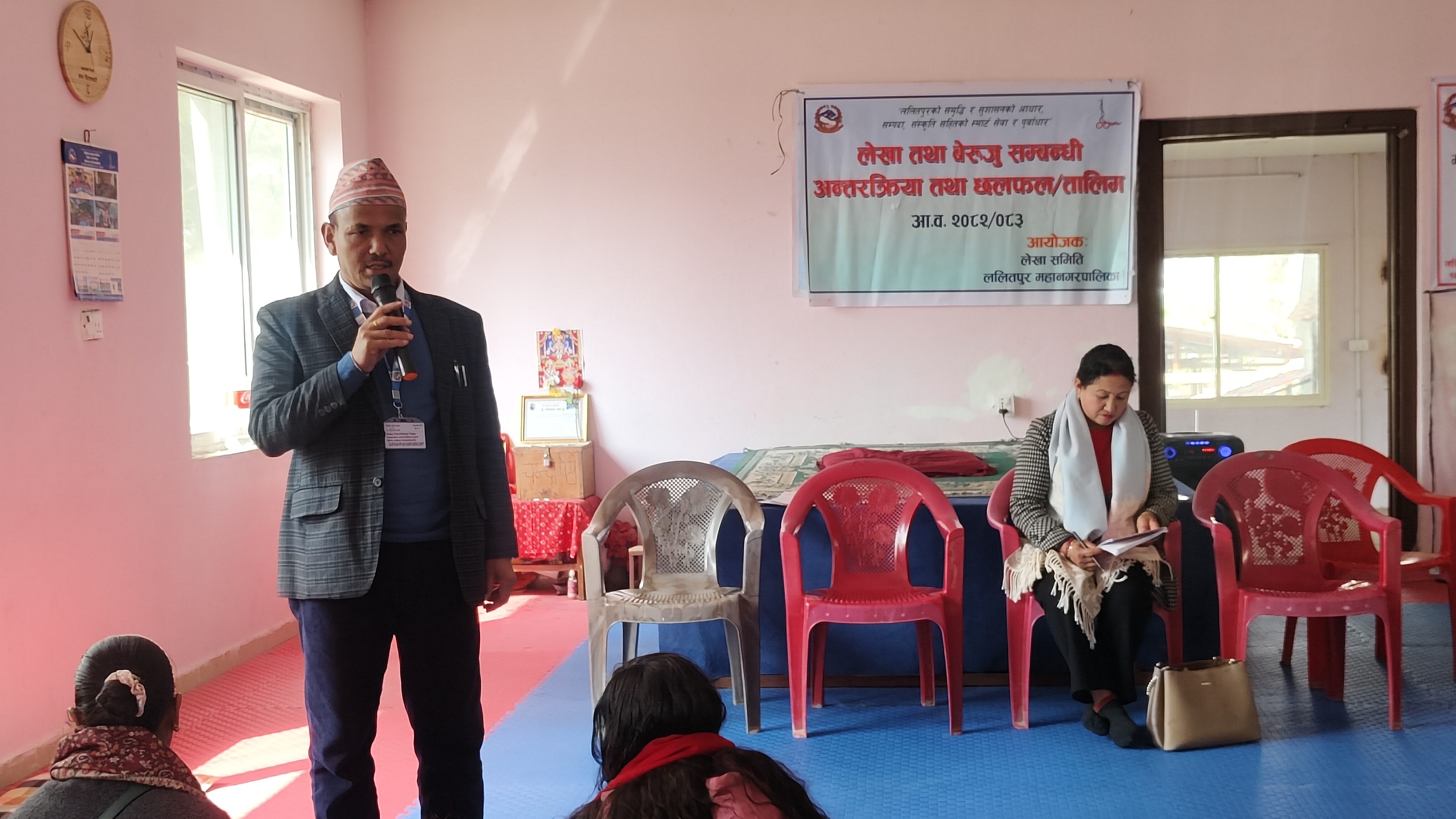 ललितपुर । ललितपुर महानगरपालिकाको लेखा समितिको आयोजनामा लेखा तथा बेरुजु सम्बन्धी छलफल, अन्तर्क्रिया र तालिम कार्यक्रम सम्पन्न भएको छ । माघ २० गते वडा नं १८ अन्तर्गतका उपभोक्ता समिति, टोल विकास संस्था तथा महिला समूहका पदाधिकारीलाई लक्षित गरी सैबुमा आयोजित कार्यक्रममा करिब ६५ जनाको सहभागिता रहेको थियो ।