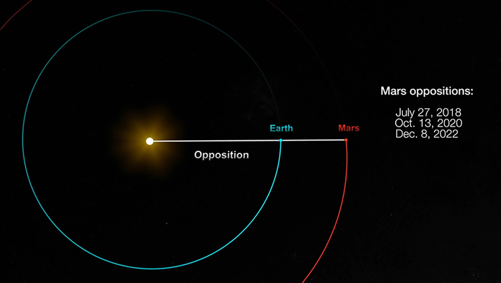 मंगलबार (अक्टोबर १३)मा पृथ्वी र मंगल ग्रह आमनेसामाने देखिदैछन् । यस्तो अवस्थामा मंगल ग्रह धेरै नै चम्किलो देखिन्छ । अब सन् २०२२ को डिसेम्बेर ८ मा मात्रै यी ग्रहहरु आमने सामने हुनेछन् ।