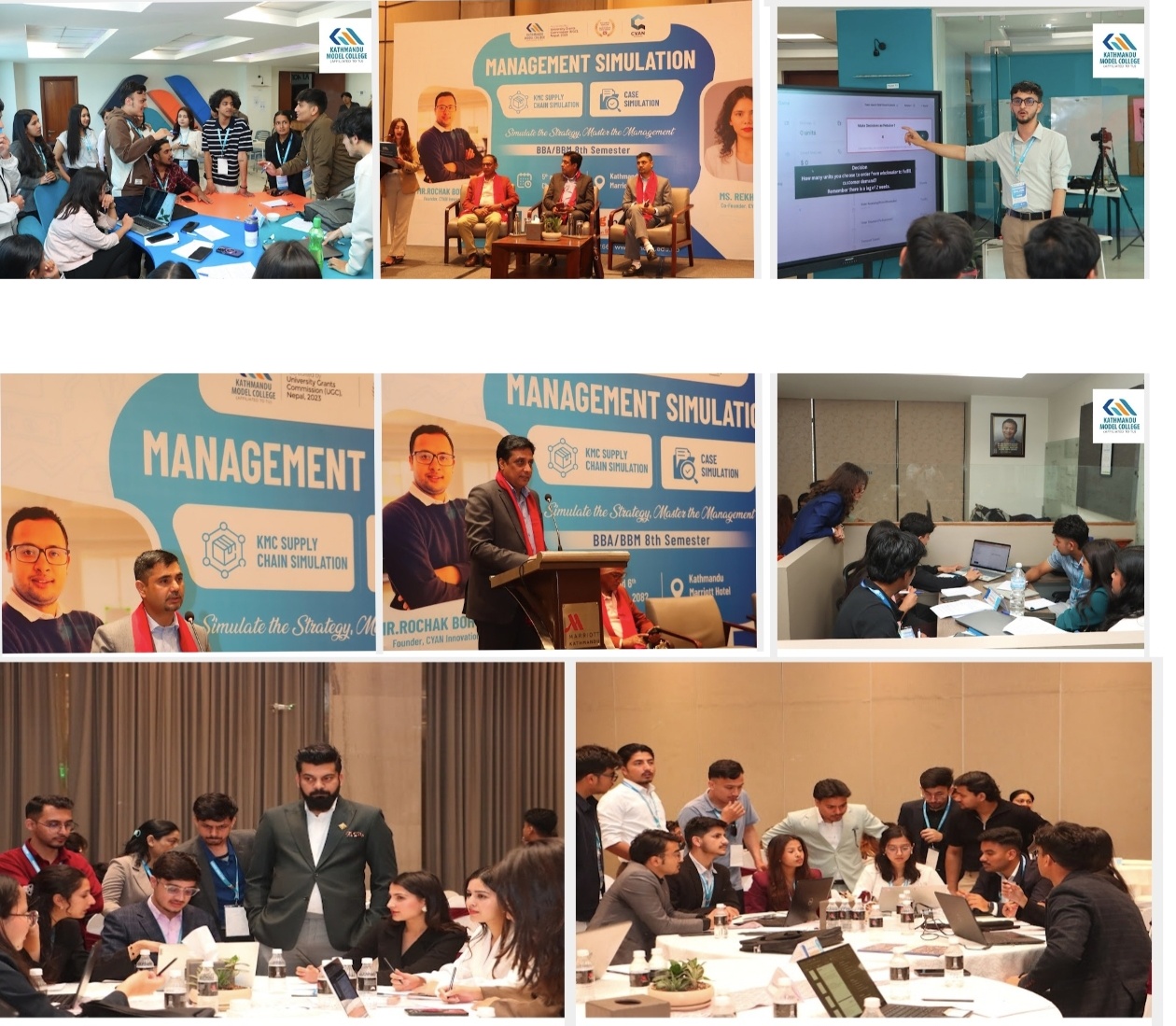 काठमाडौँ- काठमाडौँ मोडेल कलेजले बीबीए / बीबीएम आठौं सेमेस्टरका विद्यार्थीहरूका लागि दुई दिने “व्यवस्थापन सिमुलेसन” कार्यक्रम सफलतापूर्वक सम्पन्न गरेको छ। “Simulate the Strategy, Master the Management” भन्ने मूल नारासहित सञ्चालन गरिएको यस कार्यक्रमले विद्यार्थीहरूलाई व्यवहारिक व्यवस्थापन सीप अभिवृद्धि गर्ने अवसर प्रदान गरेको थियो । कार्यक्रमका प्रमुख अतिथि त्रि वि . ब्यबस्थापन संकायका डीन प्रा. डा. महानन्द चालिसे रहनुभएको थियो । उहाँले आफ्नो मन्तव्यमा व्यवस्थापन शिक्षालाई व्यवहारमा रूपान्तरण गर्न यस्ता सिमुलेसन कार्यक्रमहरूको महत्त्व उल्लेख गर्दै विद्यार्थीहरूलाई निर्णय क्षमता, नेतृत्व र रणनीतिक सोच विकासमा जोड दिन आग्रह गर्नुभयो। कार्यक्रममा कार्यकारी निर्देशक सह - प्रा. अजयप्रसाद ढकाल, कलेज प्रमुख सुरेन्द्र सुवेदी, बिबिए तथा बिबिएम कार्यक्रम प्रमुख सागर खरेल, एमबीएस कार्यक्रम प्रमुख नवीन कुमार पाण्डे, बिए तथा बिबिएस कार्यक्रम प्रमुख एलिस राजराजोपाध्याय, आठौ सत्रान्तमा आध्यापनरत सम्पूर्ण अध्यापकहरु लगायतको उपस्थिति रहेको थियो। कार्यक्रममा बोल्दै कलेज प्रमुख सुरेन्द्र सुवेदीले अभ्यासमूलक कार्यक्रमहरूले शैक्षिक ज्ञानलाई व्यावहारिक अनुभवसँग जोड्ने विश्वास व्यक्त गर्दै काठमाडौं मोडेल कलेजले विद्यार्थीहरुको समग्र विकासमा ध्यान दिएको जानकारी गराउनुभयो । सिमुलेसन कार्यक्रमलाई सायन इनोभेसन्सका संस्थापक रोचक बोहोरा तथा सह-संस्थापक रेखा वाग्लेले सहजीकरण गर्नुभएको थियो । कार्यक्रममा विद्यार्थीहरूले वास्तविक व्यवसायिक परिस्थितिको अनुकरण गर्दै रणनीति निर्माण, निर्णय लिने प्रक्रिया तथा टोलीगत कार्यसम्पादनका विविध पक्षहरूमा अभ्यास गरेका थिए। कार्यक्रमको पहिलो दिन कलेज परिसरमै आयोजना गरिएको थियो भने दोस्रो दिन होटेल काठमाडौं मेरियोटमा सम्पन्न भएको थियो। दोस्रो दिनका केस स्टडीहरू बिग मार्टसँग सम्बन्धित रहेकाले विद्यार्थीहरूले नेपाली बजारको वास्तविक व्यवसायिक परिवेशमा आधारित विश्लेषण र रणनीतिक निर्णय अभ्यास गर्ने अवसर पाएका थिए। बिग मार्टका मार्केटिङ प्रमुख पारस जंग कडेलले व्यवस्थापकीय ज्ञानलाई वास्तविक व्यवसायिक परिवेशमा रूपान्तरण गर्न कलेजले सञ्चालन गर्ने यस्ता अभ्यासमूलक कार्यक्रमहरू विद्यार्थीहरूको व्यावसायिक यात्रामा कोशेढुंगा साबित हुने विश्वास व्यक्त गर्नुभयो। यस प्रकारका अभ्यासमूलक कार्यक्रमहरूले विद्यार्थीहरूलाई भविष्यको पेशागत जीवनका लागि आवश्यक दक्षता र क्षमता विकास गर्न सहयोग पु-याउने उल्लेख गर्दै आन्तरिक गुणस्तर प्रत्यायन प्रमुख ध्रुवप्रसाद तिमल्सेनाले कलेजले सञ्चालन गर्ने सम्पूर्ण शैक्षिक गतिवि